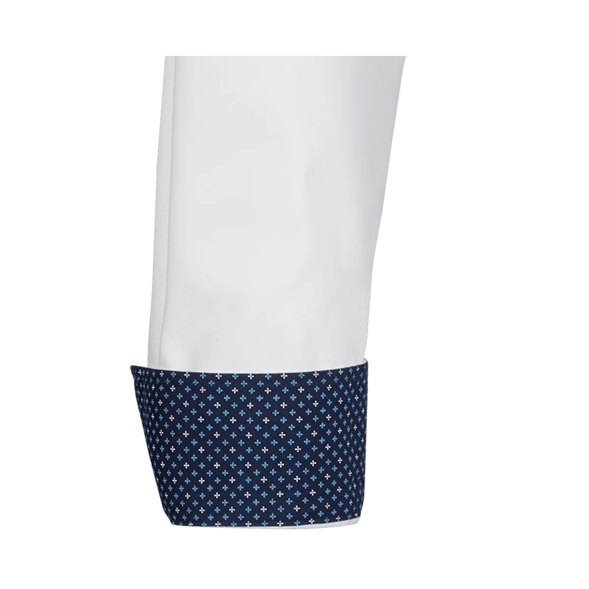 Die Manschette des Pisa New Kent Hemd weiss Langarm wurde auf der Innenseite aus farblichem, vom Grundton des Hemdes abgesetztem Stoff gefertigt. Umgeschlagen ergänzt die Manschette des Pisa New Kent Hemd weiss Langarm so optisch ideal den ebenfalls farblich abgesetzten Kragen. Diese wahlweise einfach oder zweifach dezent hervorscheinenden Farbakzente bringen auf harmonische Weise Farbe in ihr Outfit.